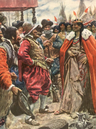 After the gifts had been presented the Englishmen tried to place a fine red cloak on the Powhatan’s shoulders. But he would not have it. He resisted all their attempts until at last one of the other chiefs persuaded him that it would not hurt him, so at last he submitted.